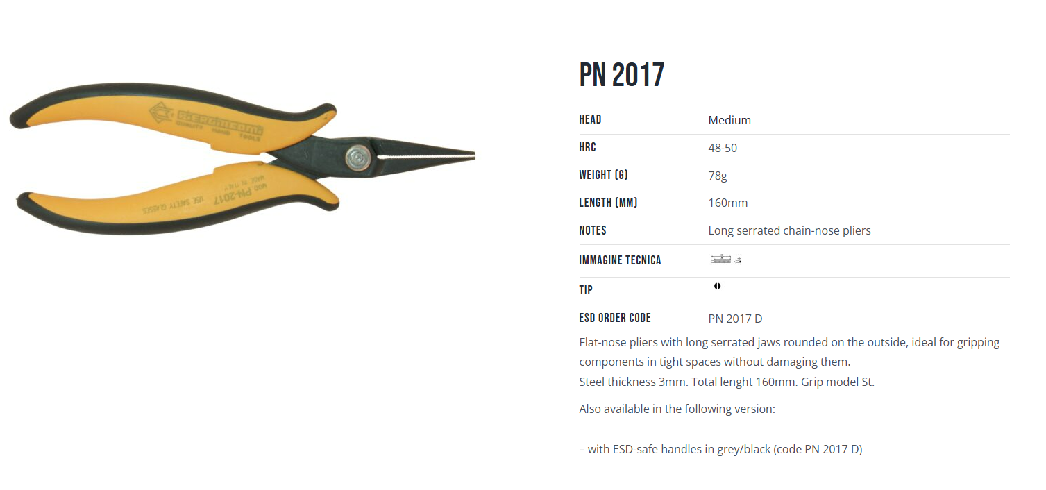長型平口尖嘴鉗,鉗口具有長齒紋,外側圓弧設計,可在狹窄空間夾持元件並提供更強的抓力。