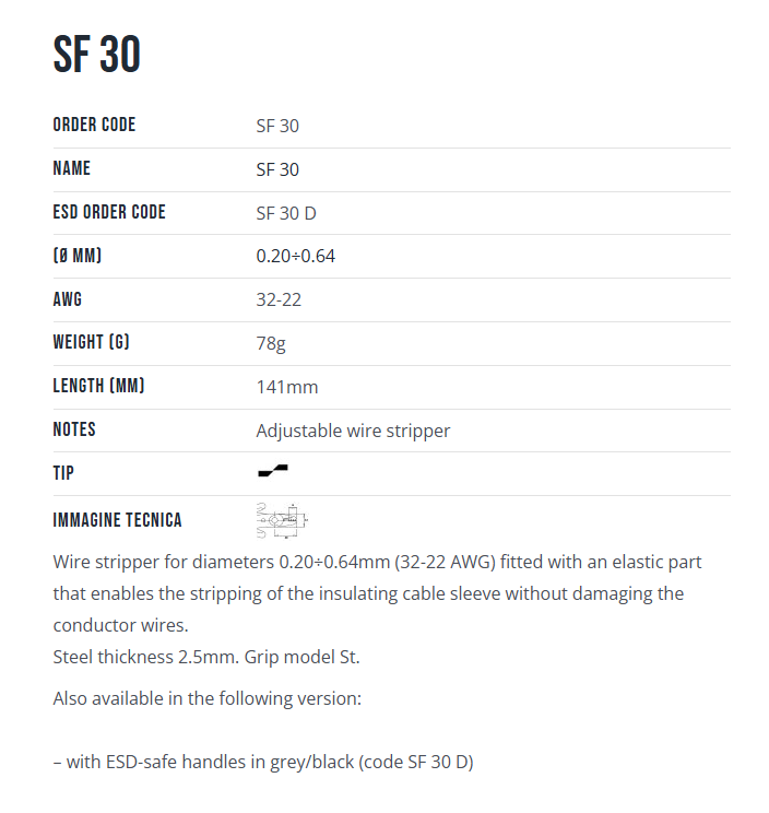適用線徑 0.20–0.64 mm(32–22 AWG) 的剝線鉗,配有彈性部件,可在剝除電線絕緣層時避免損傷導體。